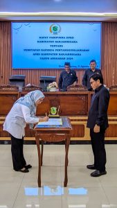 Humas.DPRD, Selasa 5 Agustus 2025 – Dewan Perwakilan Rakyat Daerah (DPRD) Kabupaten Banjarnegara menggelar Rapat Paripurna dalam rangka Penetapan Rancangan Peraturan Daerah (Raperda) tentang Pertanggungjawaban Pelaksanaan Anggaran Pendapatan dan Belanja Daerah (APBD) Tahun Anggaran 2024, bertempat di Ruang Paripurna DPRD Kabupaten Banjarnegara.