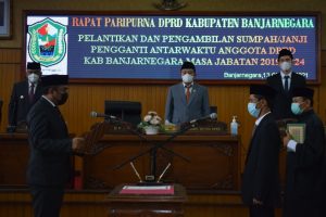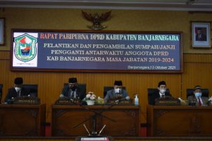 Humas.DPRD- Rabu 13 Oktober 2021 DPRD Kabupaten Banjarnegara menggelar Rapat Paripurna Pelantikan dan Pengambilan Sumpah/Janji Pengganti Antar Waktu Anggota DPRD Kabupaten Banjarnegara. Rapat dipimpin oleh Ketua DPRD Ismawan Setya Handoko,SE di dampingi para wakil ketua dan Plh. Bupati Banjarnegara. Hadir secara langsung dalam acara tersebut jajaran Forkompimda, Ketua KPU dan Ketua DPD Partai Amanat Nasional. Rapat ini juga diikuti secara virtual melalui zoom meeting untuk tamu undangan lain.
