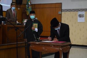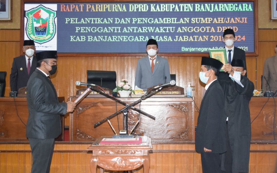 Pengucapan sumpah/janji Anggota DPRD sdr. Slamet Riyadi S.Pd.I dipandu oleh Ismawan Setya Handoko,SE., selaku Ketua DPRD Kab. Banjarnegara.